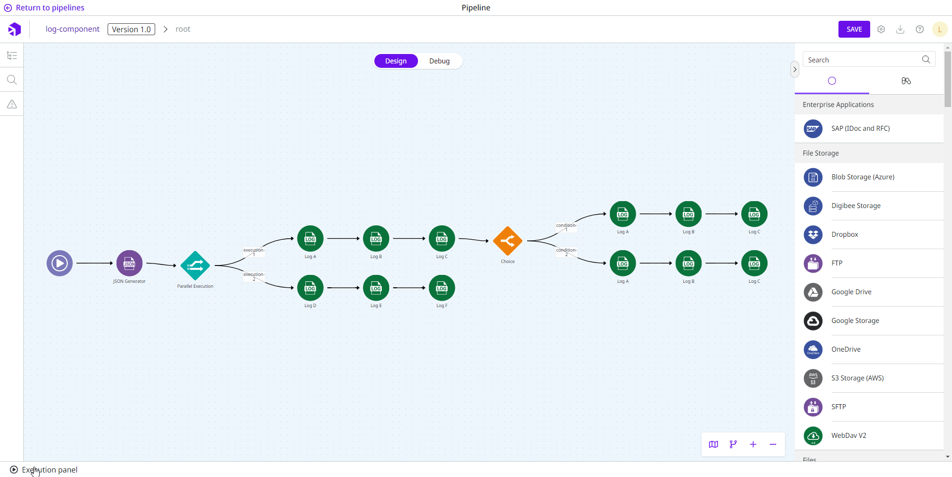 **Log** allows the creation of log registers within a pipeline. It helps with the creation of step traces.