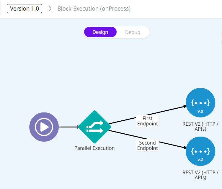 Neste caso, novas linhas de execução paralelas serão iniciadas e "unidas" ao fim da linha de execução paralela que continha o **Parallel Execution** mais interno. O **Parallel Execution** mais externo somente unirá as suas respectivas linhas quando as mais internas finalizarem.