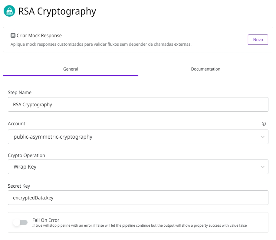 No conector RSA Cryptography, essas operações são projetadas para encapsular com segurança uma chave de sessão (ou secreta) para transferência por meio de outros conectores Digibee, garantindo tanto a confidencialidade quanto a integridade.