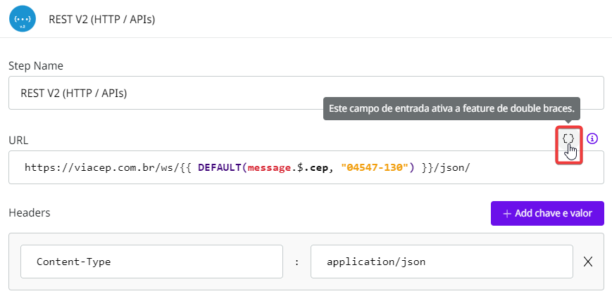 *Double Braces* é uma linguagem de expressão desenvolvida pela Digibee Integration Platform que você pode usar para referenciar e manipular dados em um fluxo. Os campos que aceitam expressões *Double Braces* contêm o símbolo **{ }**.