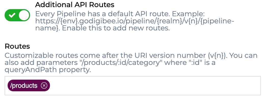 Exibido somente quando o parâmetro Additional API Routes estiver habilitado. É aqui que você consegue definir as rotas adicionais do endpoint.