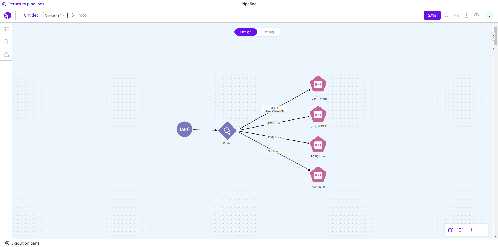 Once you save the configuration of the trigger, a visual representation of the routes is displayed in the pipeline.