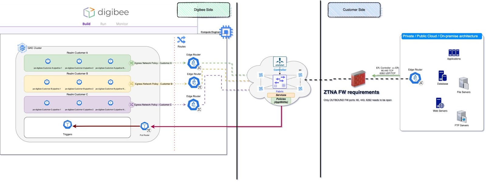 <figure><img src="https://content.gitbook.com/content/jvO5S91EQURCEhbZOuuZ/blobs/mi2NeKtdT132DAIFjQsI/ztna_architecture.jfif" alt=""><figcaption><p>Diagram representing the ZTNA architecture at Digibee Integration Platform</p></figcaption></figure>
