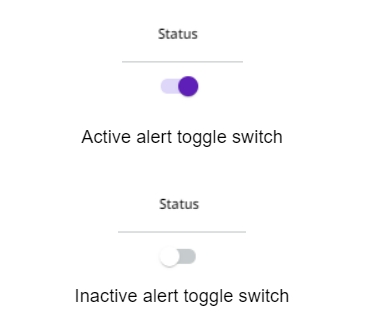 Click the toggle switch under the Status column to activate or deactivate the alert. If the alert is activated, click the toggle switch to deactivate.