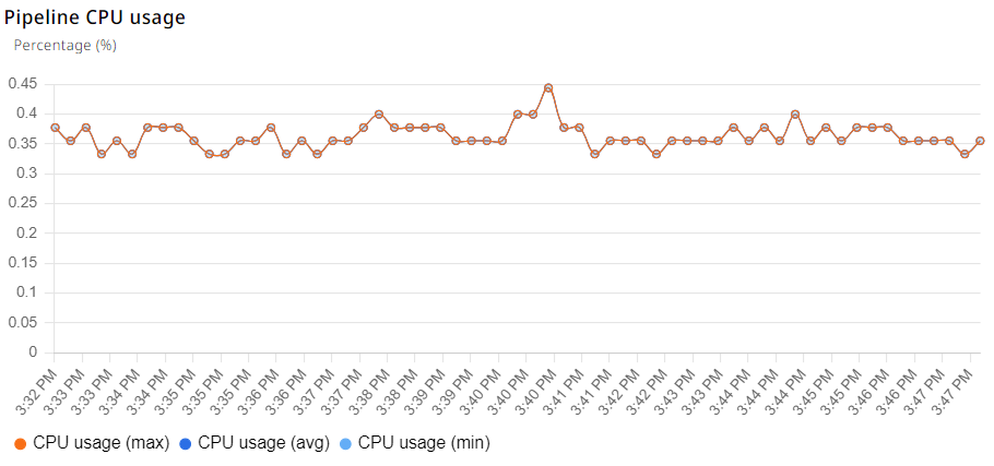With this information, you can assess whether the pipeline size selected during deployment is appropriate, since higher CPU usage may result in slower processing..