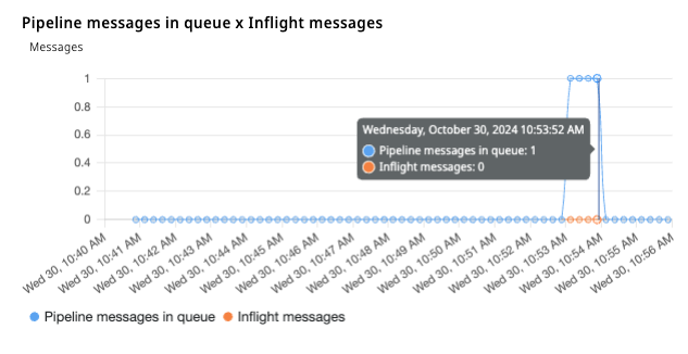 <figure><img src="https://content.gitbook.com/content/jvO5S91EQURCEhbZOuuZ/blobs/h0d0Wx6oPfz4ls7YY5T2/Pipeline%20messages%20in%20queue%20x%20Inflight%20messages.png" alt=""><figcaption><p>Pipeline messages in queue x Inflight messages chart on the Pipeline Metrics page</p></figcaption></figure>