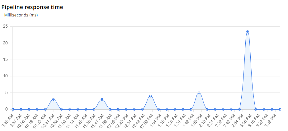 <figure><img src="https://content.gitbook.com/content/jvO5S91EQURCEhbZOuuZ/blobs/vSda8DrmJgkBqfmJhGZt/Pipeline-response-time.png" alt=""><figcaption><p>Pipeline response time chart on the Pipeline Metrics page.</p></figcaption></figure>