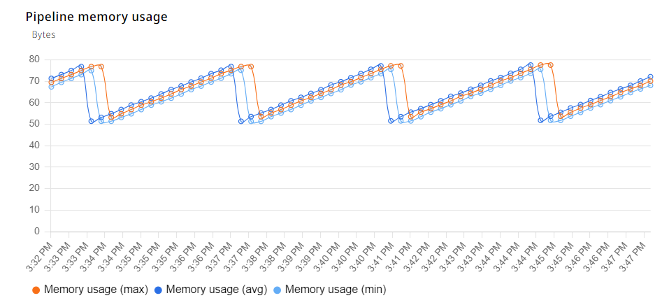 <figure><img src="https://content.gitbook.com/content/jvO5S91EQURCEhbZOuuZ/blobs/vZtaEVT3CRPcZAKlNMDr/Memory%20Usage_ENG.png" alt=""><figcaption><p>Pipeline memory usage chart on Pipeline Metrics page</p></figcaption></figure>