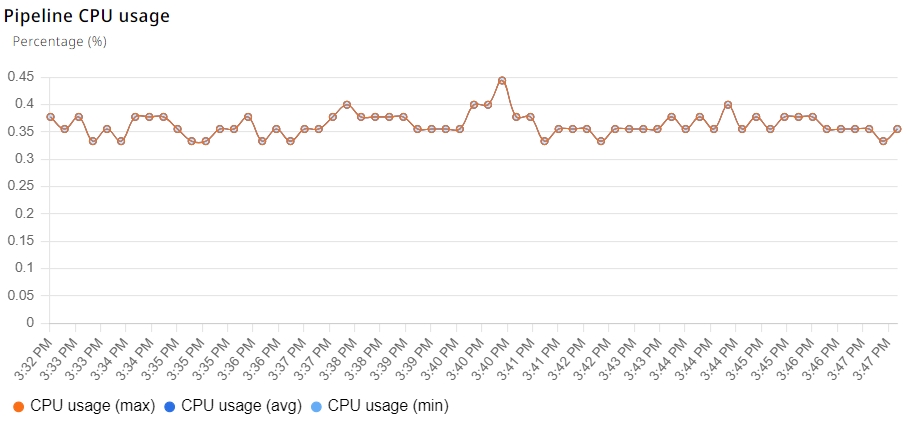 With this information, you can determine whether or not the pipeline size you selected during your deployment was appropriate, as higher CPU usage can lead to slower processing.