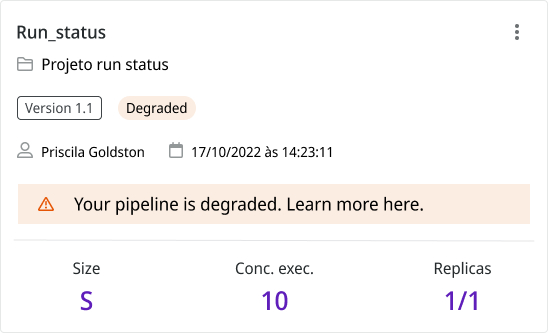 The **Degraded** status indicates that the deployment has been executed but is not completed because the replicas did not happen within the 10-minute interval. You must redeploy the pipeline.
