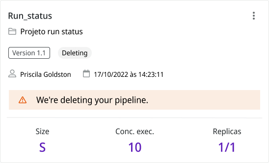 The **Deleting** status is displayed in the pipeline card when you remove a deployment.