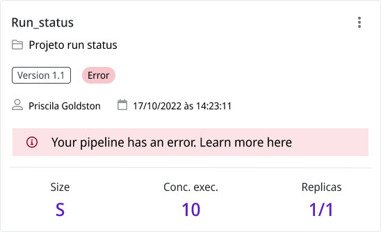 The **Error** status means that the deployment was interrupted by a failure. For example, it could be an error in the **Build** stage or a **Size** selection that is not supported because the pipeline is too large.