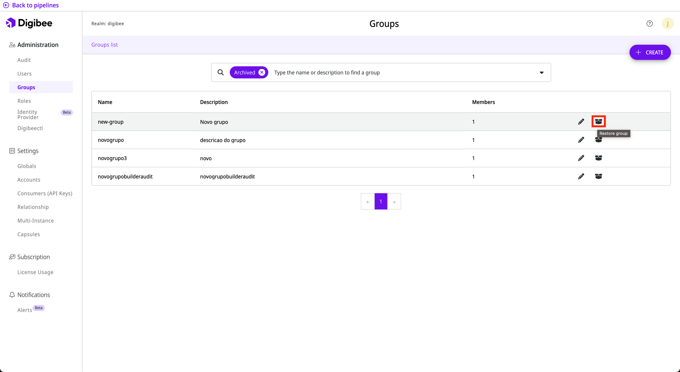 Learn more about Groups, which are a collection of individual users, in the Digibee Integration Platform. Discover how to create, edit, archive and restore them within the integration environment.