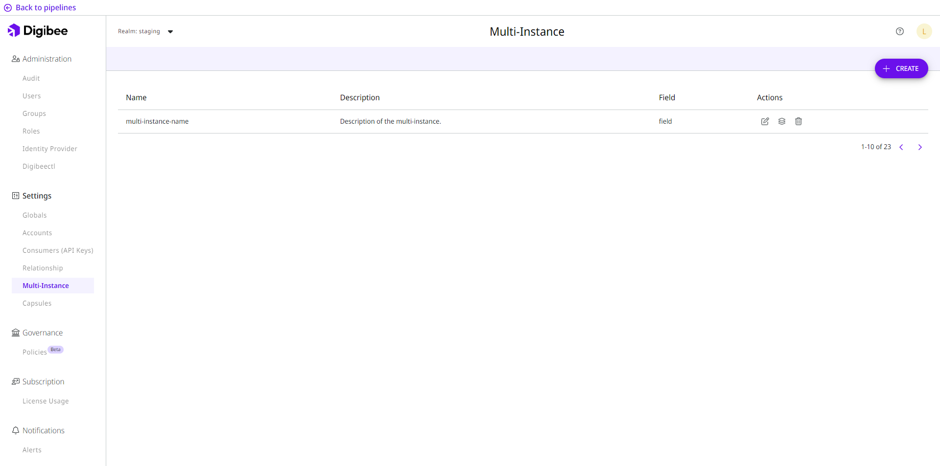 It is possible to edit, configure and delete the multi-instance models listed. Also, you can deploy your multi-instance pipelines, to know how to deploy a multi-instance pipeline see this article. Below are some actions that can be taken: