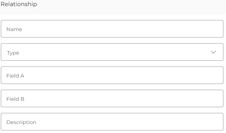 The Relationship functionality supports three different relationship types. When creating a new relationship model, you should select only one type depending on the type of entity attributes, that is, the data you want to relate in the pipeline. These are: