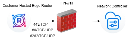 O diagrama abaixo mostra os requisitos necessários para conectar o Edge Router ao Network controller: