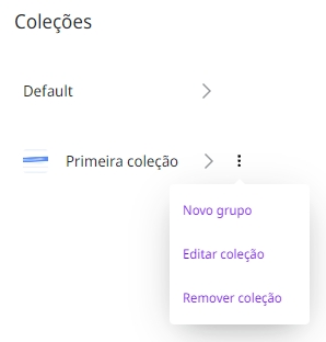 Depois que a coleção estiver criada, passe o mouse sobre o nome da coleção na barra lateral esquerda e clique no botão com o ícone de três pontos para exibir as seguintes opções: