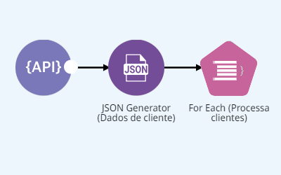 Vamos imaginar um processo chamado “Validação de Dados de Cliente”. Esse processo obtém os dados dos clientes através do *endpoint* REST e então verifica se cada registro de cliente possui os dados necessários.