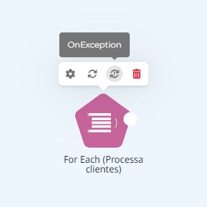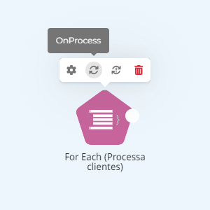 Para iterar pela coleção de registros, usaremos o componente **For Each (Processa clientes)**.