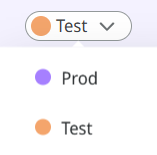 Você pode selecionar o ambiente desejado no canto superior esquerdo da tela. Ao selecionar um ambiente, toda a página é recarregada para exibir os dados relacionados aos pipelines nesse ambiente. Cada ambiente possui uma cor específica para facilitar a identificação.