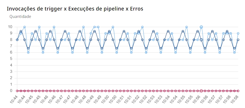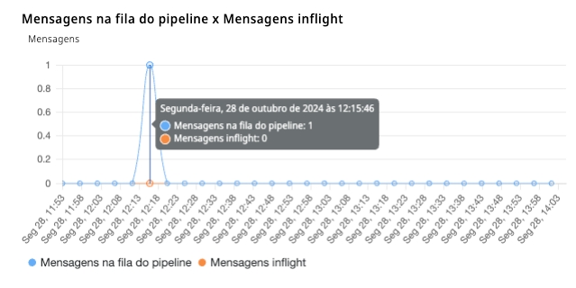 Este gráfico exibe o tempo médio de resposta do pipeline em milissegundos. O monitoramento do tempo de resposta é importante para avaliação do desempenho do pipeline e detecção de gargalos.