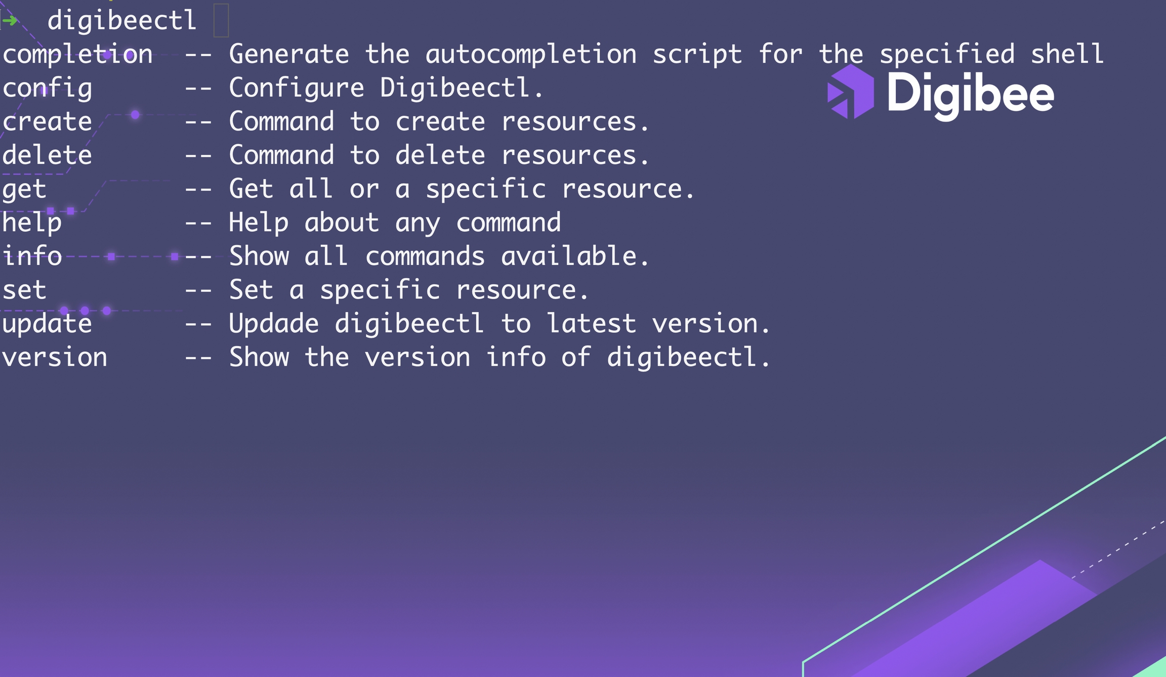 Abaixo você pode ver a documentação de ajuda do Digibeectl: