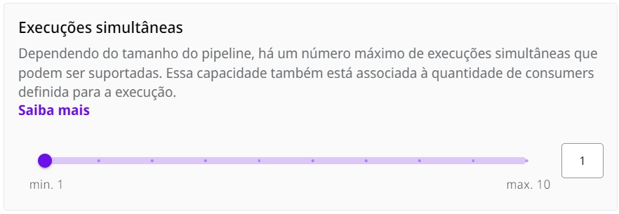 Por exemplo, se você configurar um pipeline com tamanho de implantação SMALL para suas execuções de pipeline, isso significa que até 10 mensagens podem ser processadas simultaneamente.