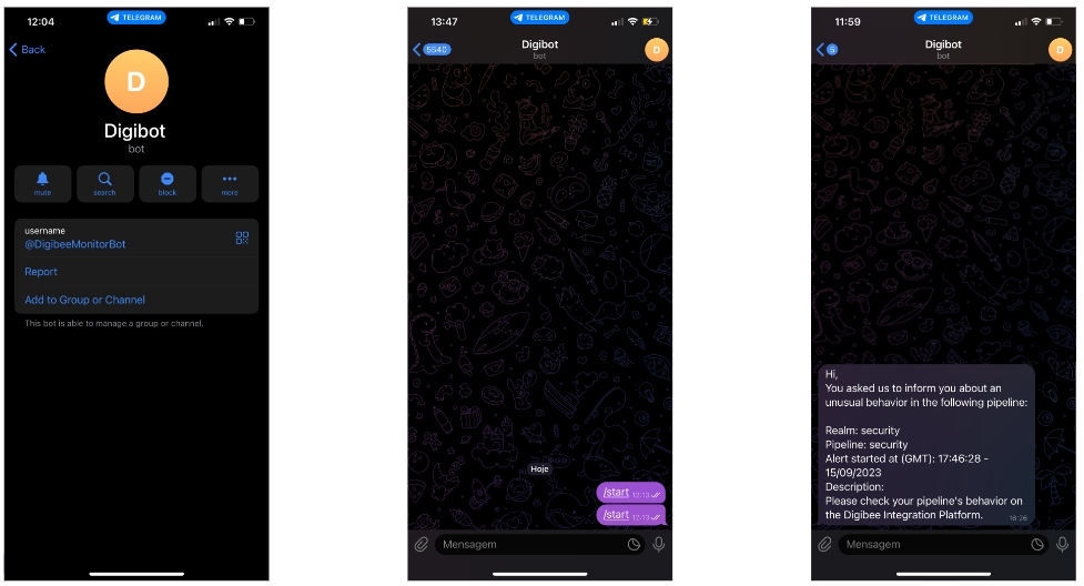 After configuring the alert, search for @DigibeeMonitorBot on the Telegram’s contact list.