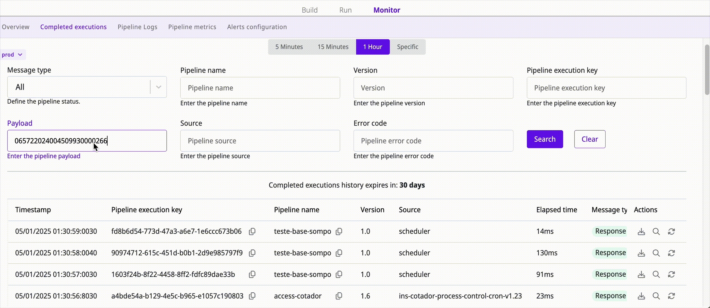 The Digibee Integration Platform provides monitoring tools and insights to detect issues such as increased response times or unusual error rates. Enable these tools to monitor pipeline health in real time and receive proactive alerts about performance or configuration issues.