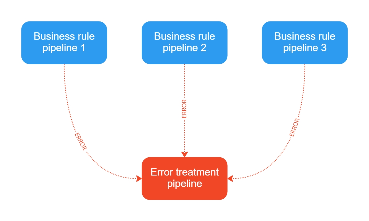 Note that the same error event can be published by many pipelines and sent to the same error treatment pipeline.