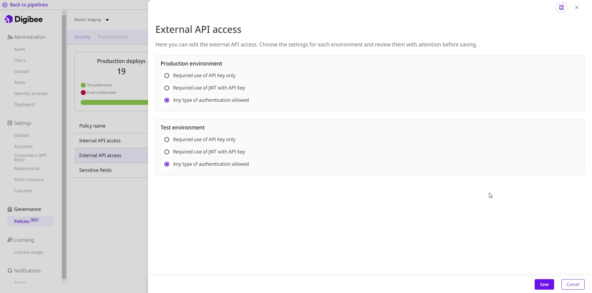 Learn more about the External API access policy on the Digibee Integration Platform.