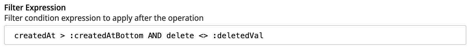 When using the Query and Scan operations, the developer can use conditional expressions to filter the returned items. Conditional expressions can be defined in the fields Sort Key Expression (available only in the Query operation), and Filter Expression (available in the Query and Scan operations).