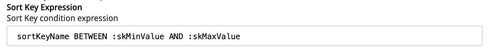 A condition expression to be applied on the Sort Key attribute. This will refer to an Index Sort Key, if the field Index Name is specified.