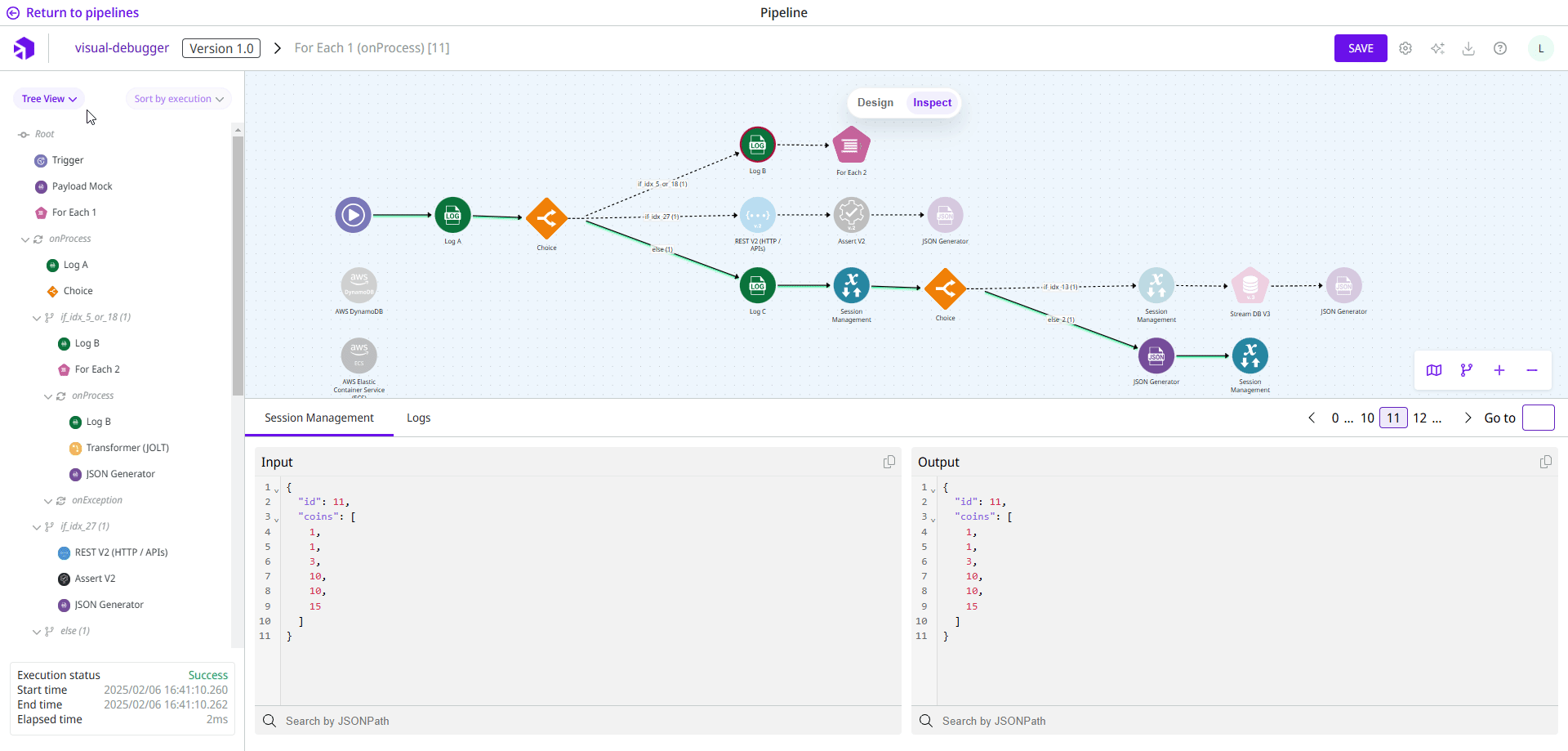 A **List View** has been added to the **Left Panel** in Inspect Mode, alongside the redesigned **Tree View**. It lets you see executed connectors in two ways: