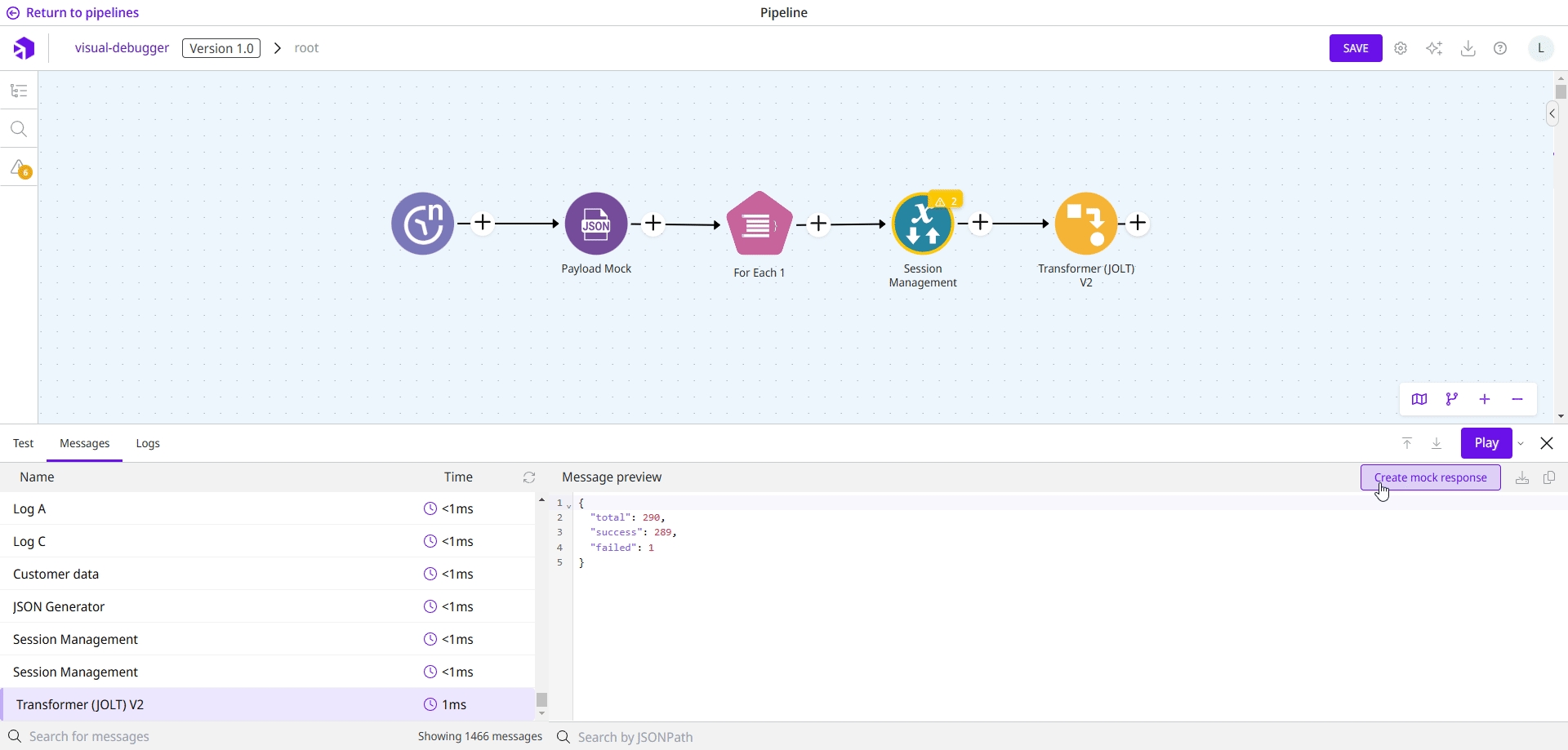 This feature enables you to easily create a mock response using the connector’s output message. Simply select the message you want to use as the basis for your mock response, click Create mock response, and enter the required details.