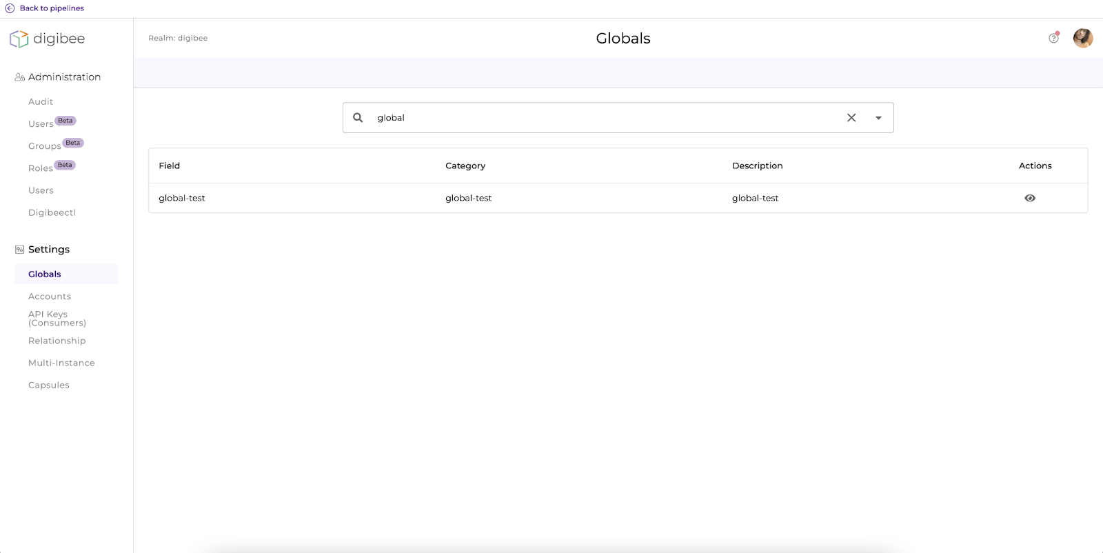We've created a feature that allows a user with read-only permission to have access to the details view on the Globals page by clicking the eye icon.