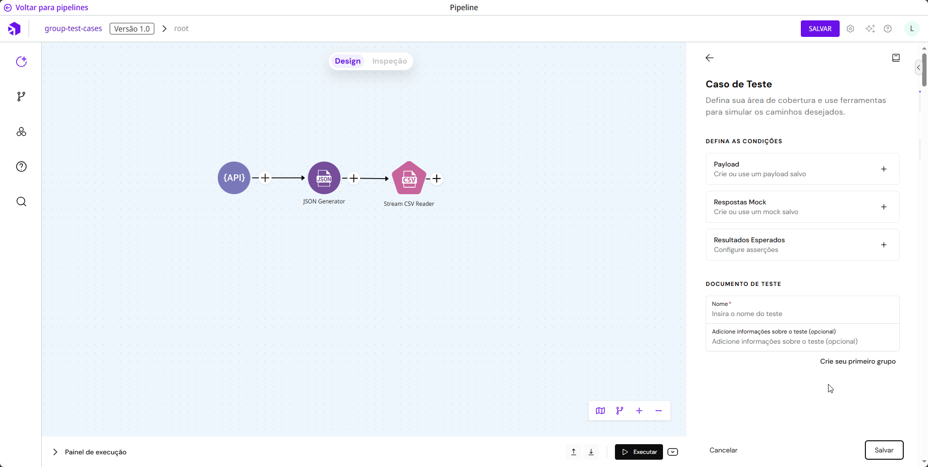 Informações adicionais estão disponíveis na [documentação de Casos de Teste](https://app.gitbook.com/s/cO0A6g1dOsu8BiHYqO67/development-cycle/build-overview/canvas/test-cases).