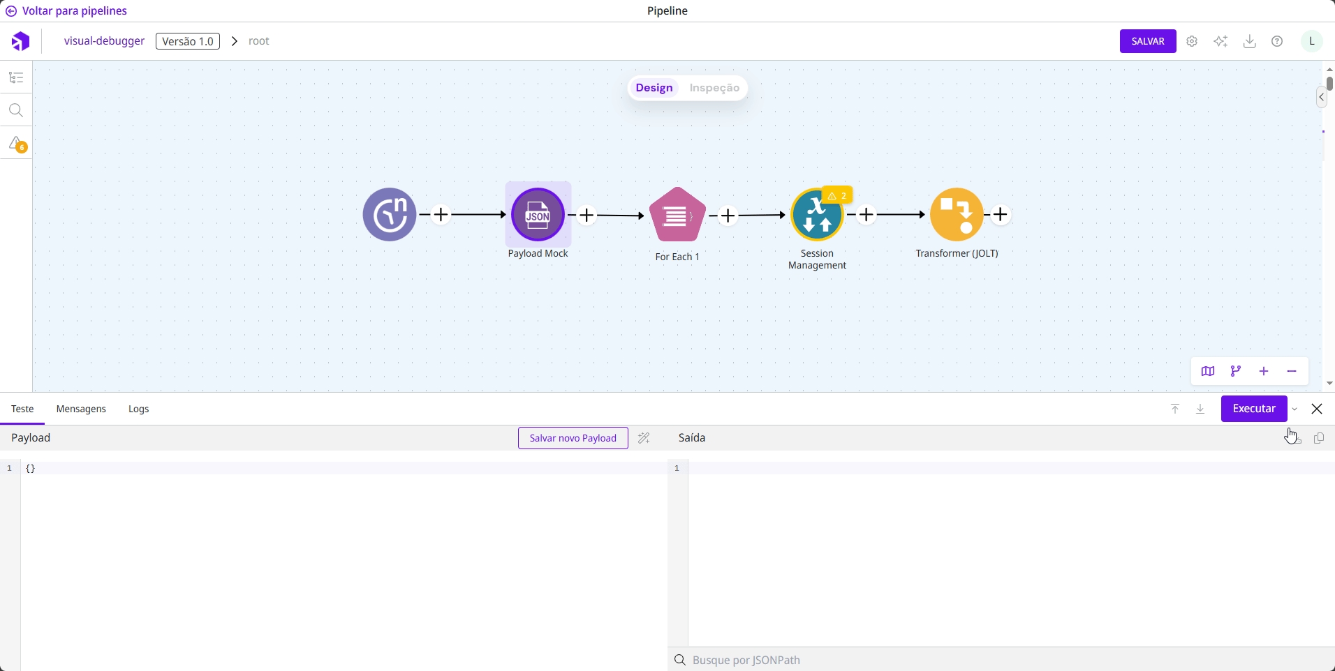 Informações de execução diferentes no Modo de Design e Modo de Inspeção: Corrigimos o bug que fazia o Modo de Inspeção exibir dados de execução incorretos nos campos de Input e Output.