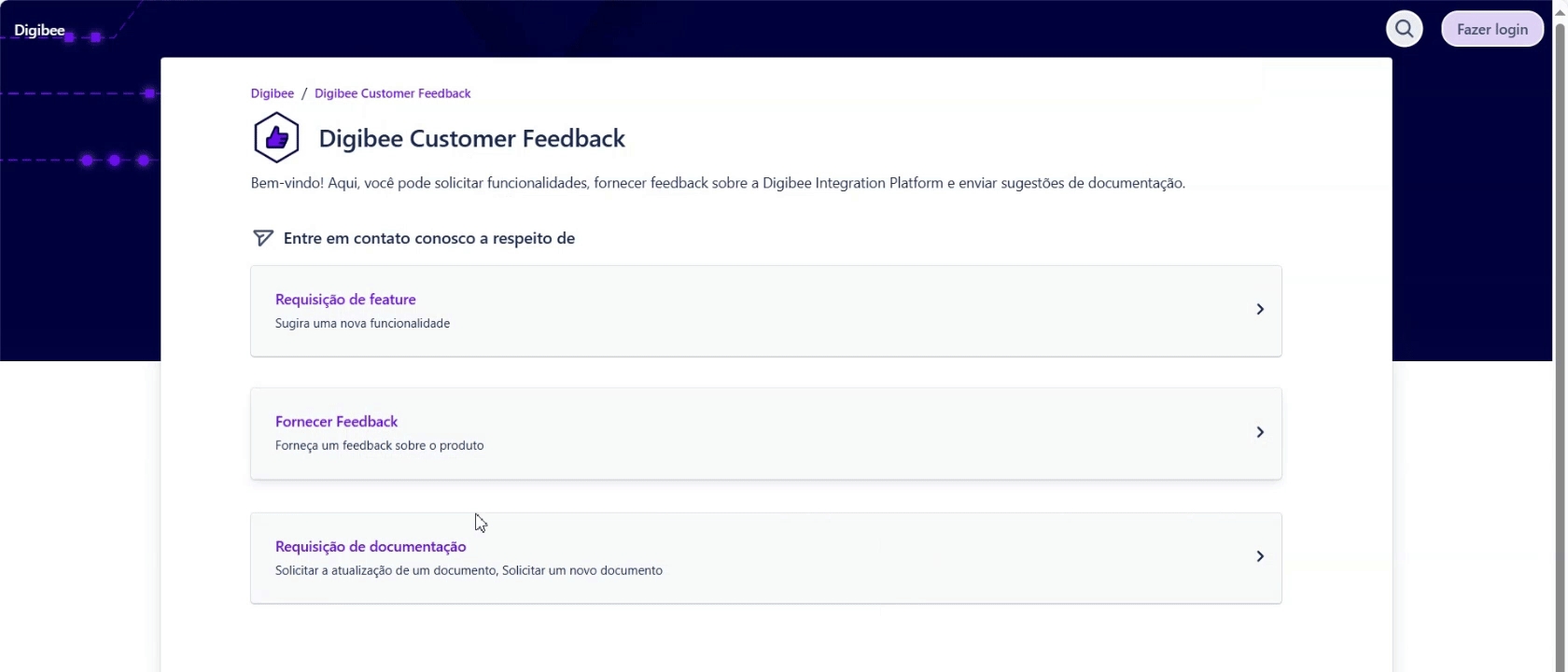 Agora você pode solicitar uma nova documentação ou atualizações em documentações existentes diretamente na Digibee Integration Platform.