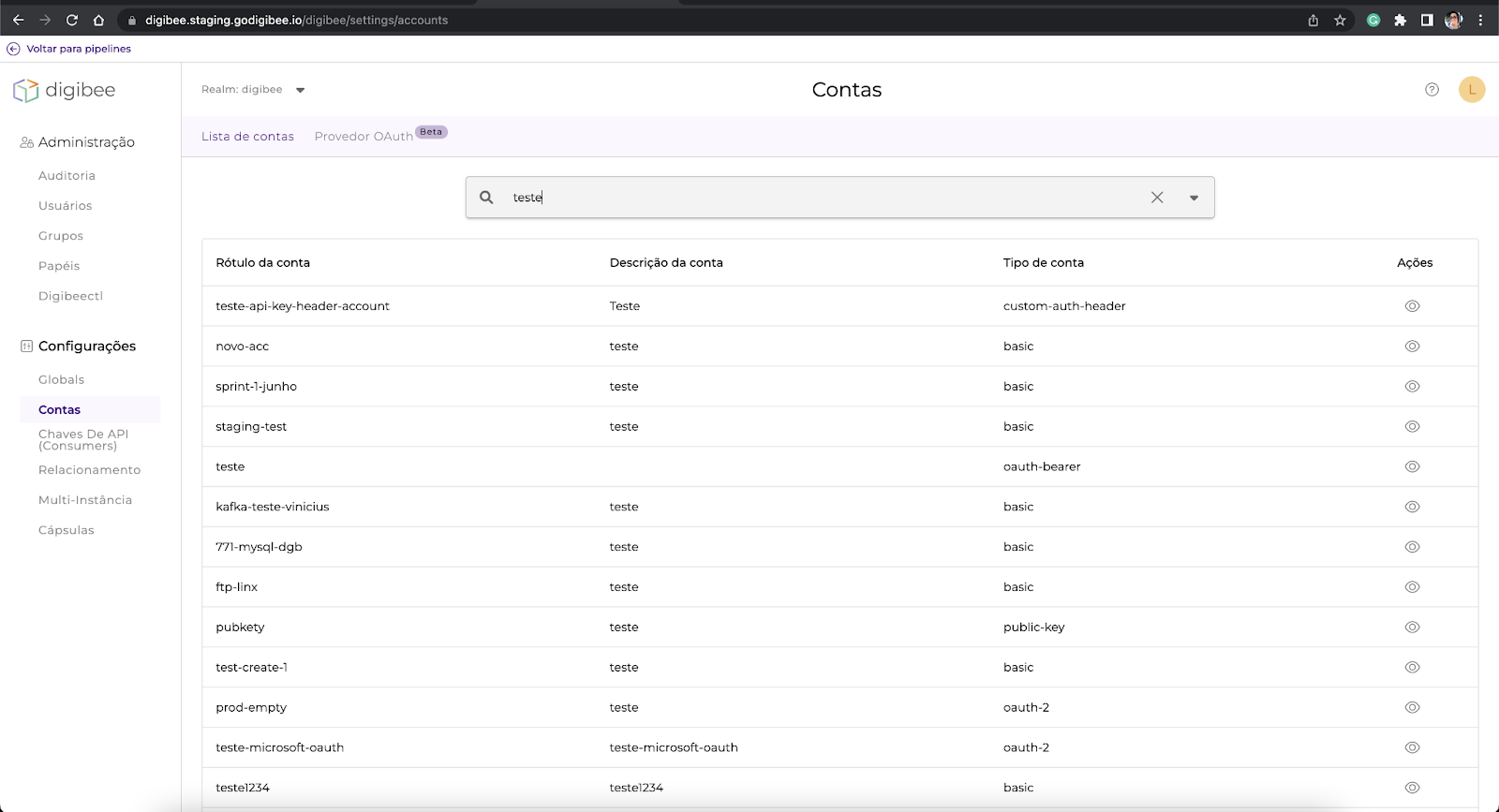 IMPORTANTE: atualmente, essa funcionalidade está disponível apenas para realms integrados com Provedores de Identidade (IdP).