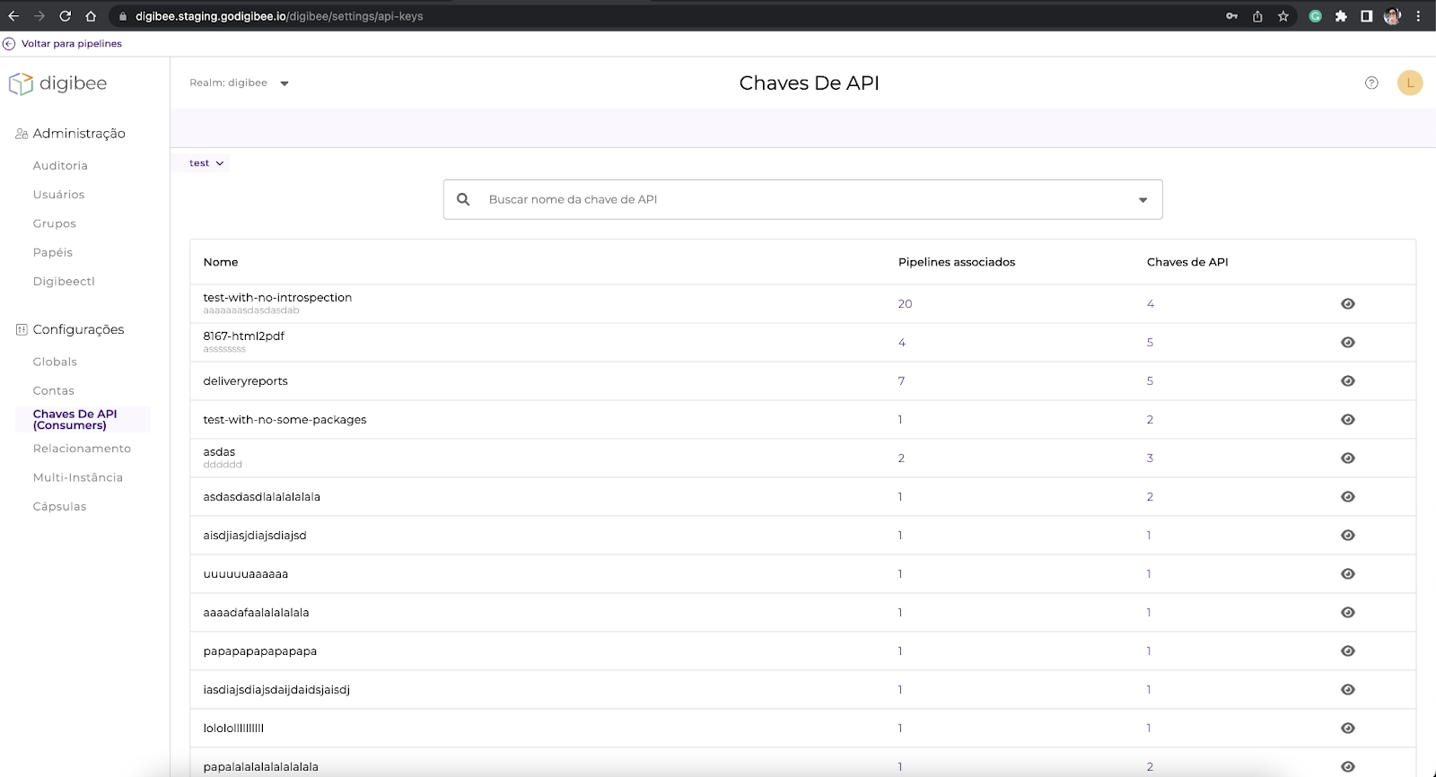 Criamos uma funcionalidade que permite que um usuário com permissão de apenas leitura tenha acesso à visualização de detalhes na página de Chaves de API ao clicar no ícone de olho.