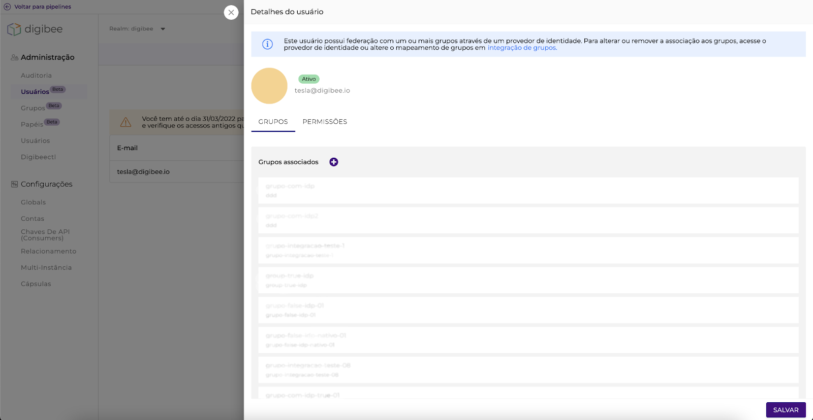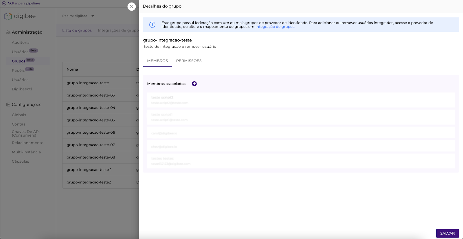 Para saber mais, leia o artigo Integração de Grupos IdP com grupos Digibee.