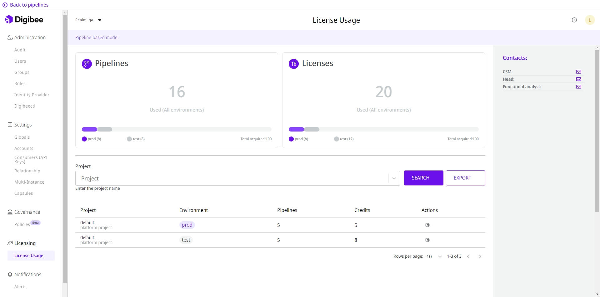 Essa atualização é uma melhoria na página de Consumo de licenças para modelos baseados em pipeline e capacidade.