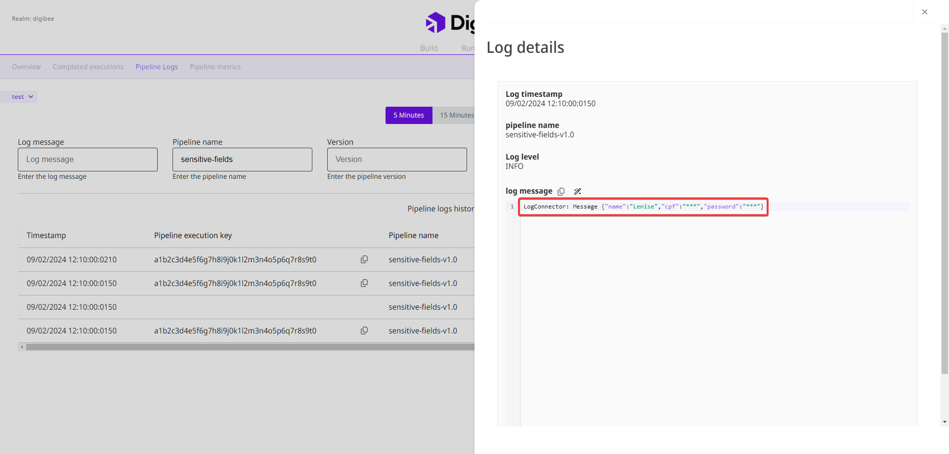 Configure sensitive fields in the [pipeline settings](https://app.gitbook.com/s/jvO5S91EQURCEhbZOuuZ/development-cycle/build-overview/pipelines/how-to-create-a-pipeline) or the [Sensitive Fields Policy](https://app.gitbook.com/s/jvO5S91EQURCEhbZOuuZ/platform-administration/governance/policies/security/sensitive-fields) to automatically hide them in logs and messages. This prevents data exposure during integration, reducing security risks. Obfuscated fields are replaced with "\*\*\*".