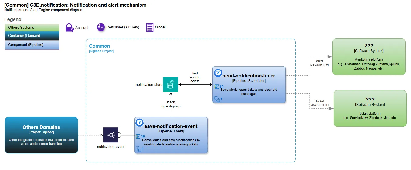 This document describes an implementation suggestion of a **centralized notification mechanism** for event-driven integrations on the Digibee Integration Platform. The goal is to ensure that important events, especially errors, are communicated in a reliable and scalable way, allowing systems and users to respond appropriately.