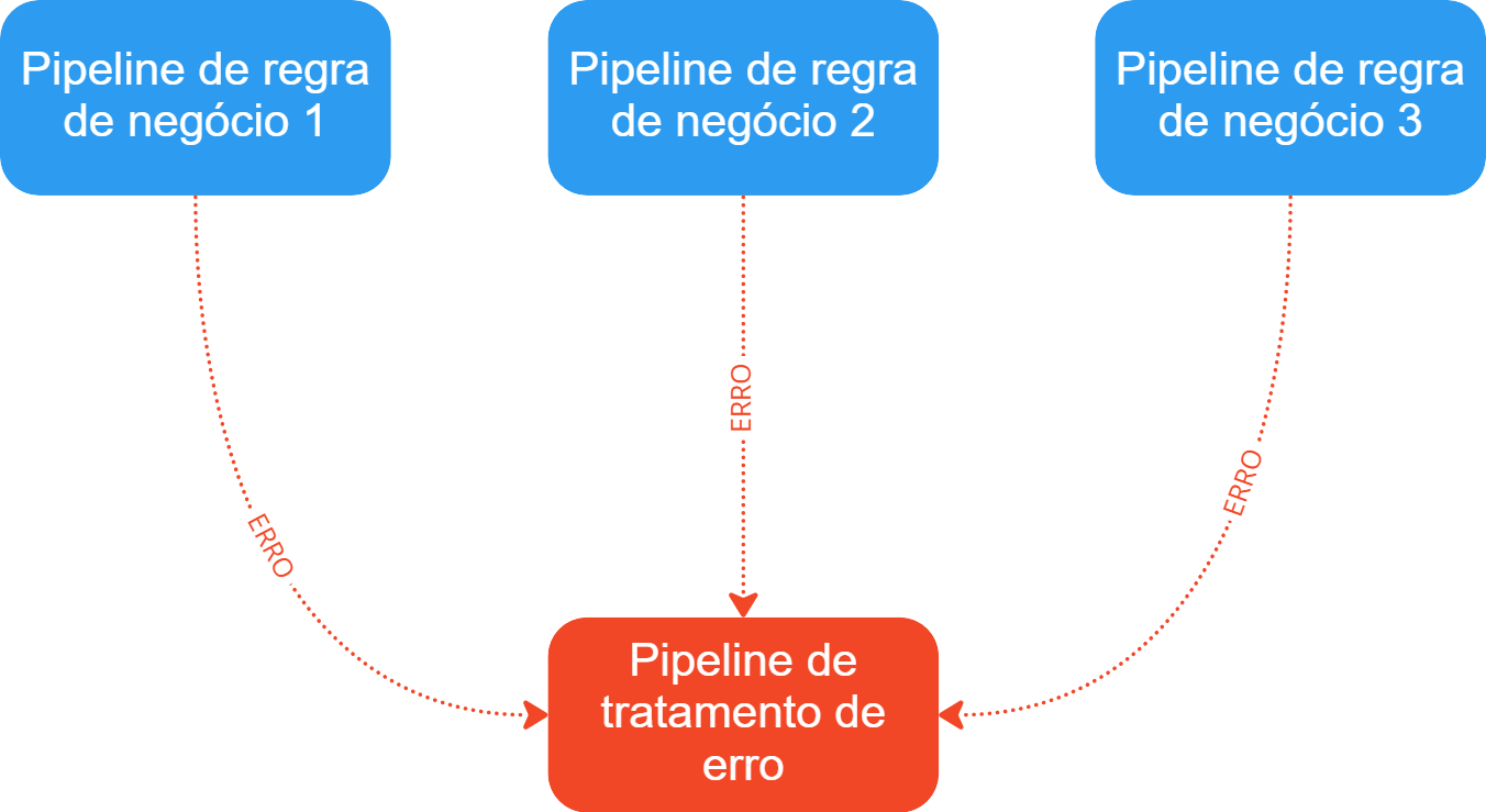 O ***pipeline*****&#x20;de tratamento de erro** é um único pipeline que possui um *trigger* de evento. Ele “escuta” os eventos de erro que são publicados pelos *pipelines* de regra de negócio. Esse pipeline pode enviar alertas de erro ou reprocessar dados.