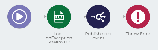 No subpipeline onException desse componente, adicione um componente Log seguido de um Event Publisher. Este componente publica eventos de erro aos quais o seu pipeline de tratamento de erros está inscrito. Se você quiser aprender mais sobre pipelines de tratamento de erro, leia nossa documentação sobre arquitetura orientada a eventos.