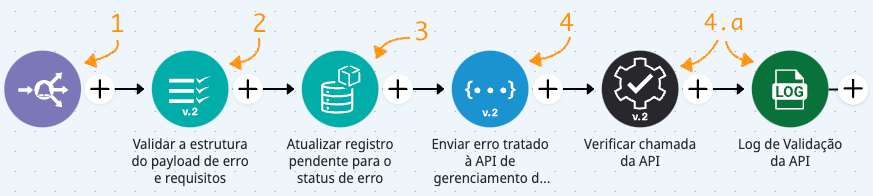 <figure><img src="https://content.gitbook.com/content/XfrDexGOLMin51pAiWkq/blobs/6NNvKGGC71hfzr4ktMv3/Diagrama%201%20PT.jpg" alt=""><figcaption><p><em>Diagrama: Visão geral de alto nível do pipeline de tratamento de erros em uma integração EDA.</em></p></figcaption></figure>