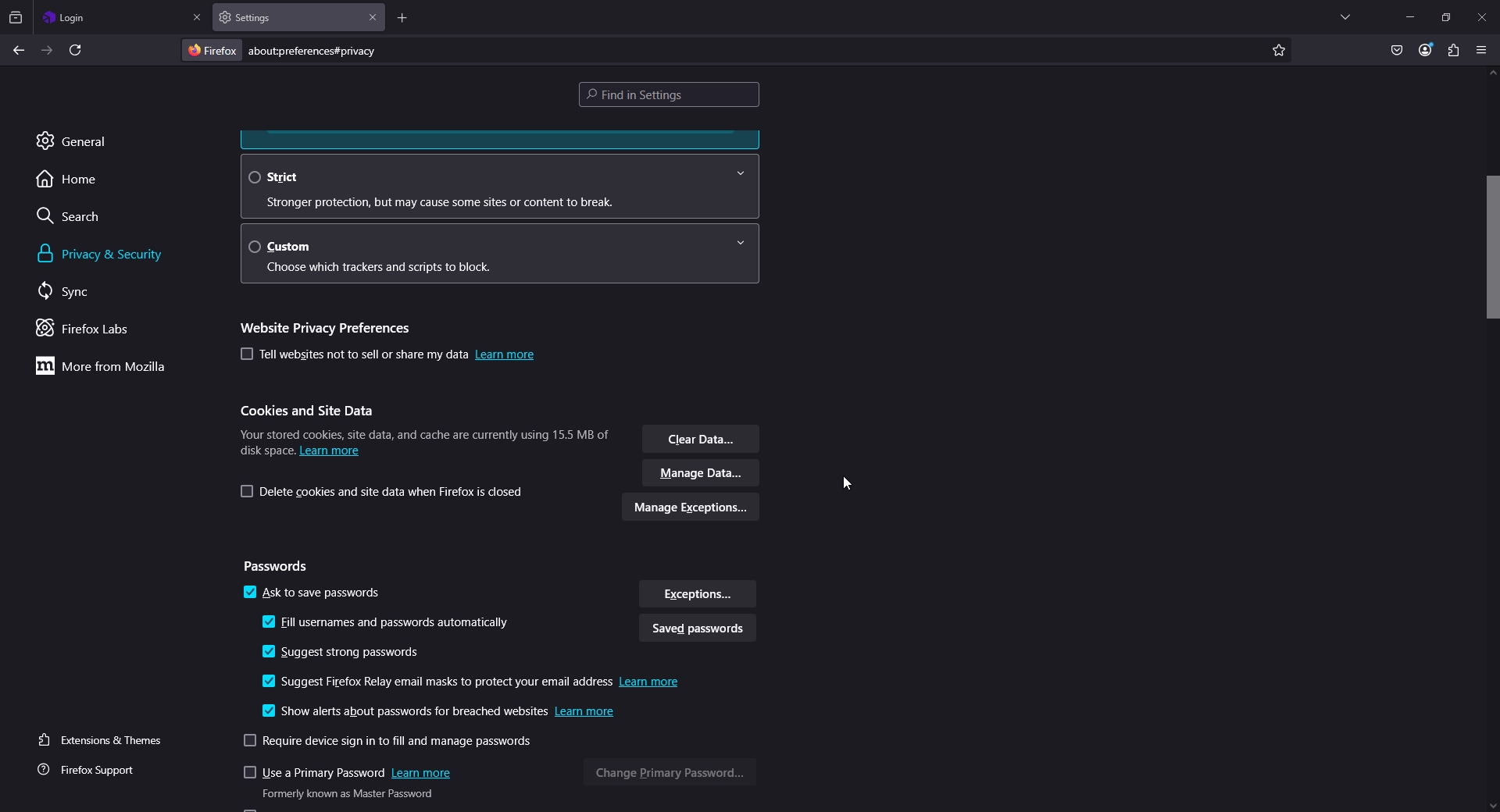 Open the Privacy & Security panel and navigate to the Cookies and Site Data section.