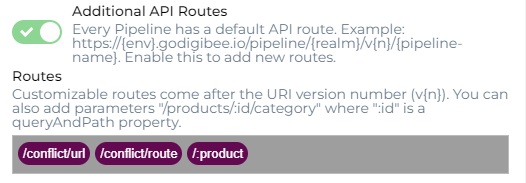 But if we set the same route, **/conflict/route**, in another pipeline as shown below, the different pipelines will have identical URLs, so only one of them will be executed.